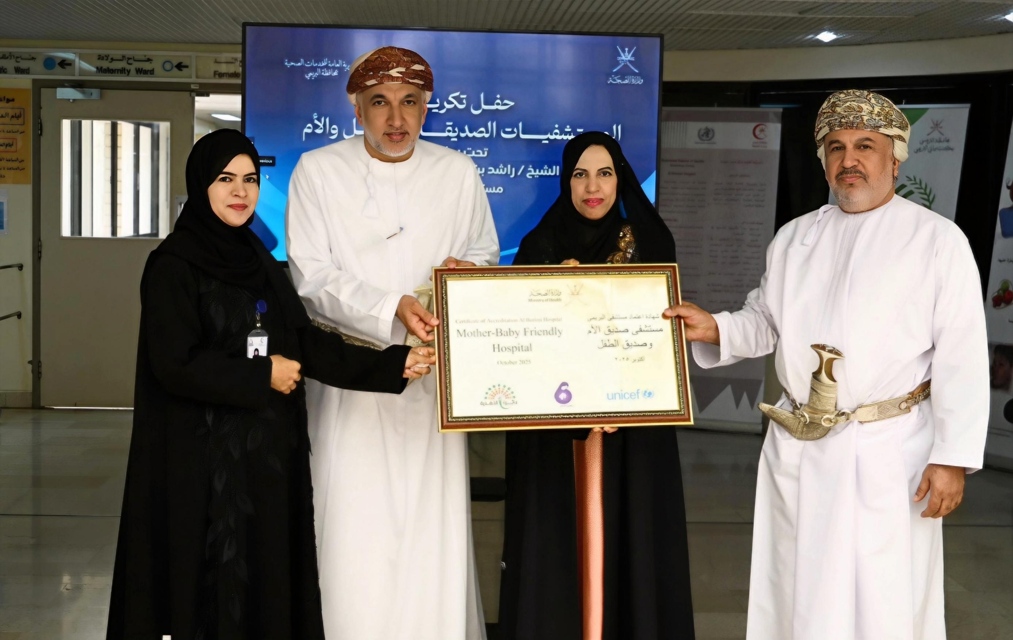 ضمن الجهود المبذولة لتعزيز برامج رعاية الأم والطفل ولدعم مبادرة المستشفيات الصديقة للطفل احتفلت وزارة الصحة اليوم (الأحد) بتكريم مستشفى البريمي بمناسبة حصوله على شهادة الاعتماد الدولي كونه أول مستشفى صديق للأم، وثاني مستشفى صديق للطفل على مستوى سلطنة عمان ، وذلك بقاعة الاستقبال بالمستشفى .