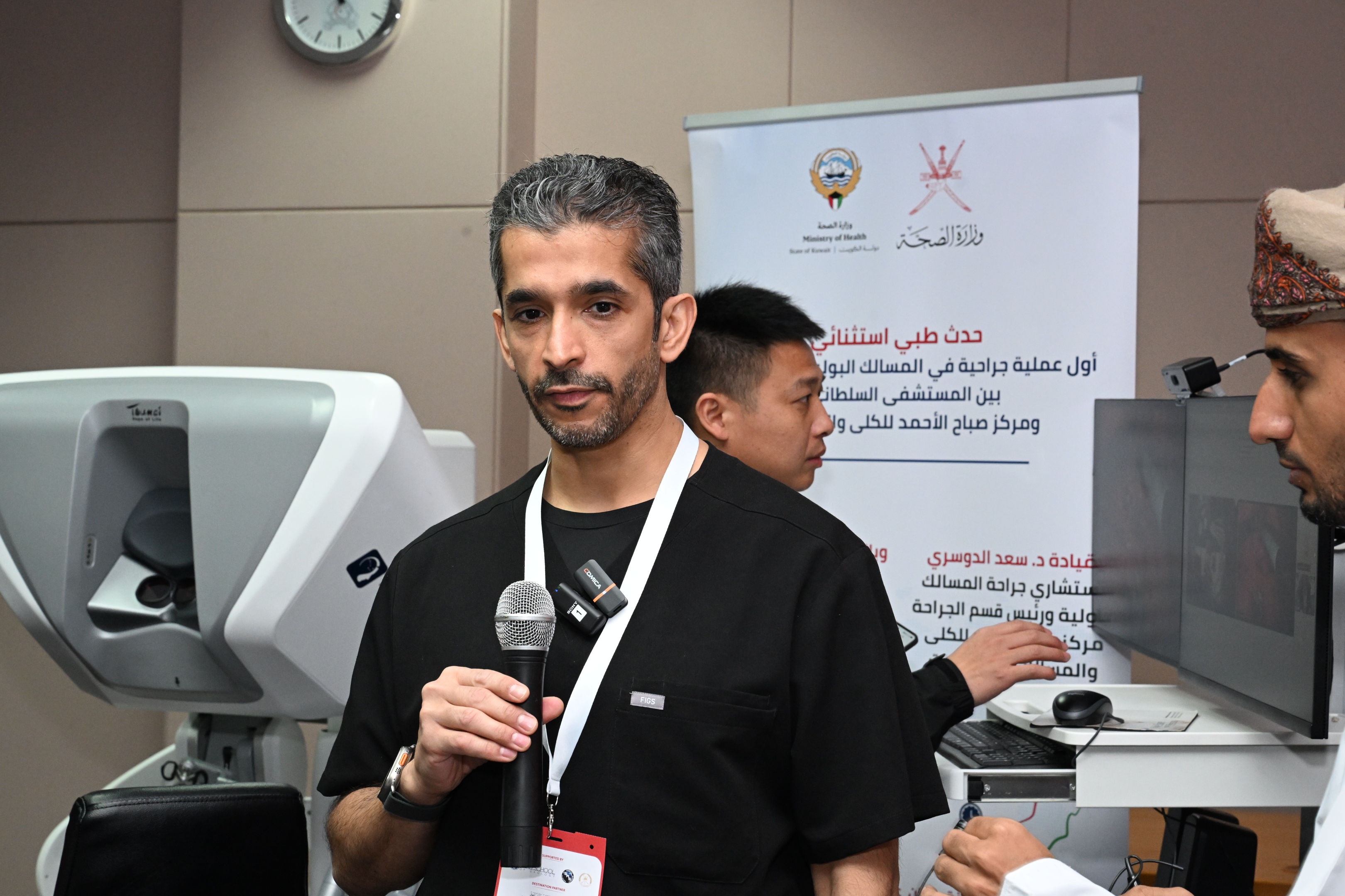 Dr. Qais Al-Hooti, Consultant and Head of the Urology Department at RH, stated that today marks a milestone for the institution as it celebrates the successful completion of the first remote surgery performed using a robotic system between Oman—represented by the Royal Hospital—and Kuwait.